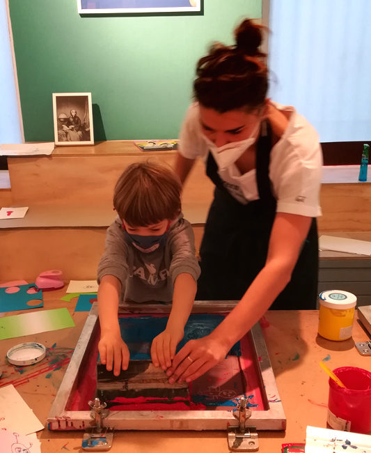 I offer an inside look in the artistic practice, through screen printing or drawing and through topics that I address myself in my own work as an artist.